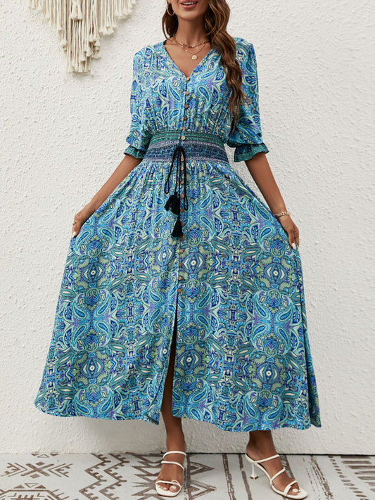 Half Sleeve Slit Midi Dress Paisley Print
