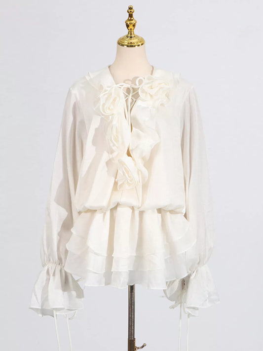 Sleeve Shirt Button Up Flounce Sleeve Shirt