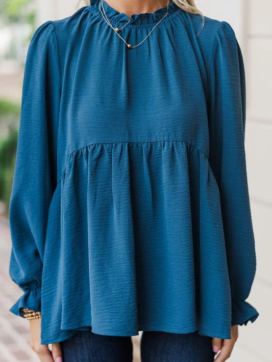 Flounce Sleeve Blouse Frill Mock Neck